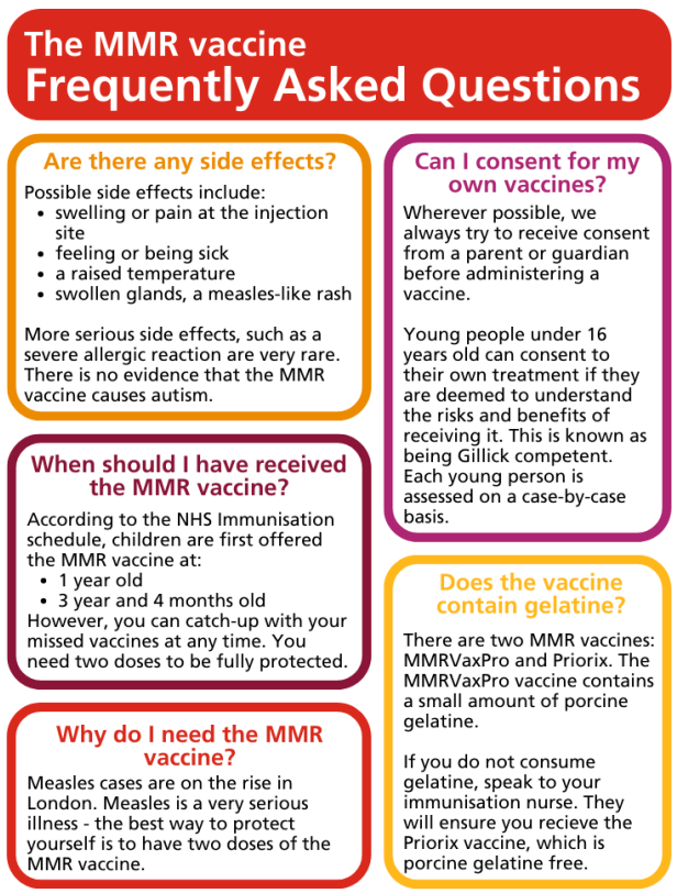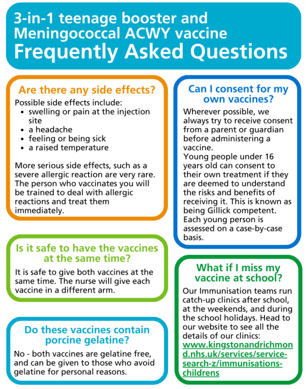 We have included some frequently asked questions about the 3-in-1 teenage booster, MenACWY vaccine and the MMR vaccine below.