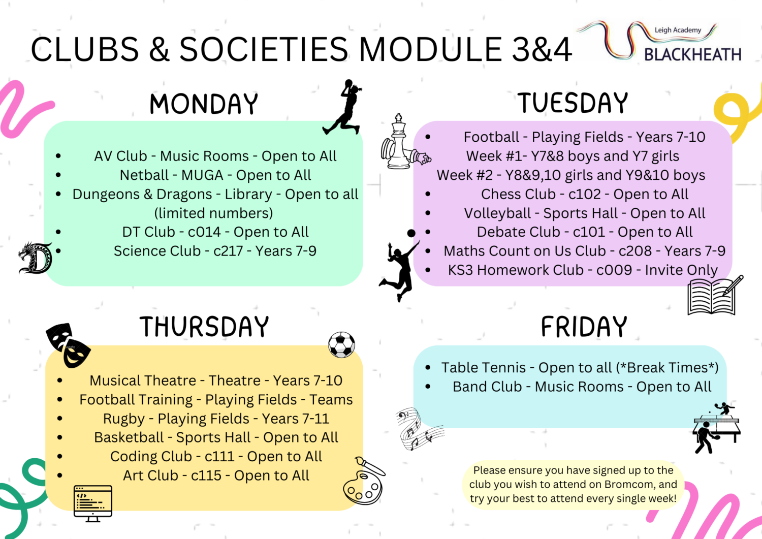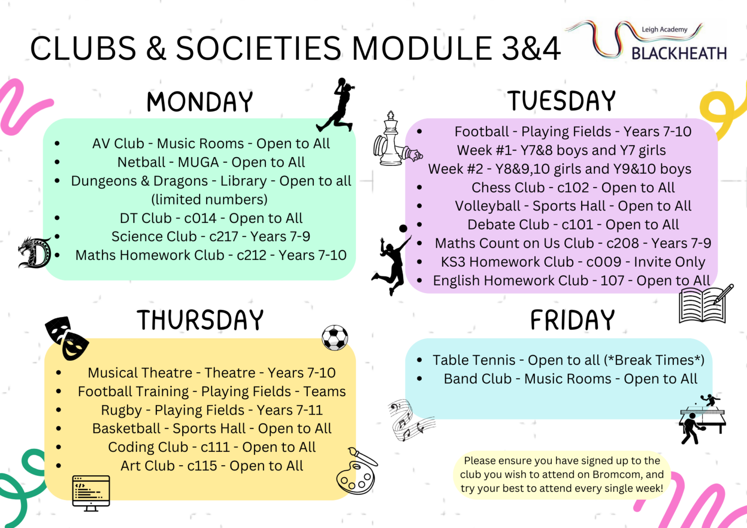For Sports Clubs, you will need to bring your full LAB PE uniform to change into at the end of the school day.